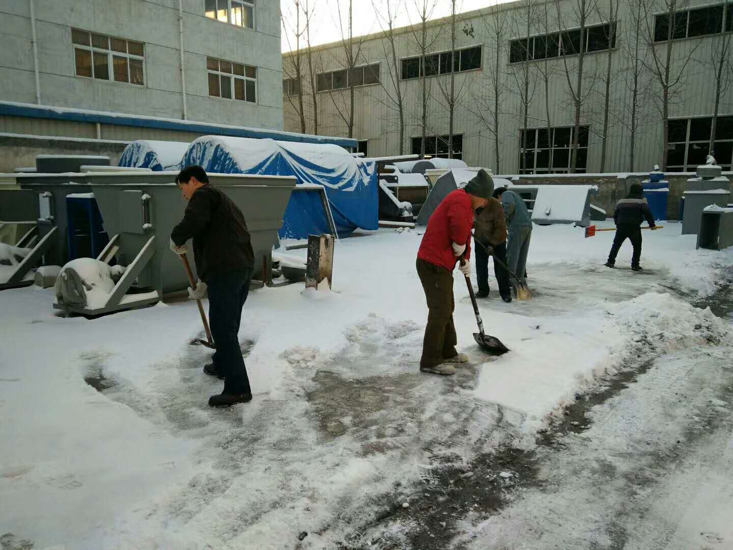 這場雪持續(xù)一天一夜,整裝待發(fā)的設(shè)備上蓋著厚厚的一層雪,為了不耽誤客戶的工期,正常發(fā)貨,一大清早銘將全體員工集體出動(dòng),清掃設(shè)備上的雪,大家不怕嚴(yán)寒,始終飽含工作熱情和高昂的斗志,有力的為塞爾維亞的正常發(fā)貨做好準(zhǔn)備。